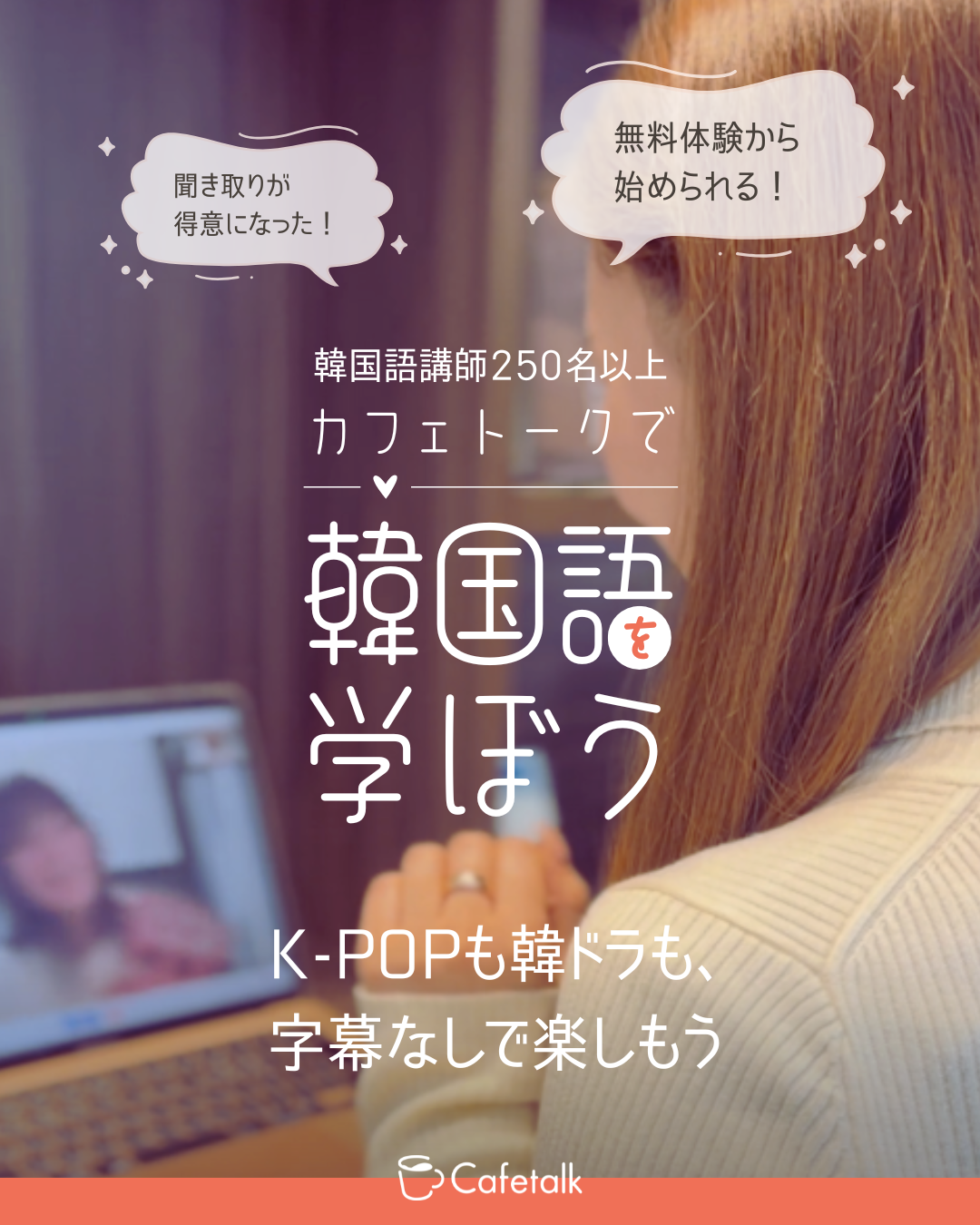 日本最大級オンライン習い事のカフェトークは、「いつもの生活に世界のスパイスを」をコンセプトに、日本中・世界中の講師から、オンラインで習い事ができるサービスです。