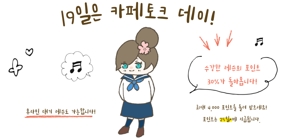 ※ 일본 시간(UTC+9)을 기준으로 합니다. 공지 이전에 확정된 19일 수강 레슨도 모두 대상에 포함됩니다.