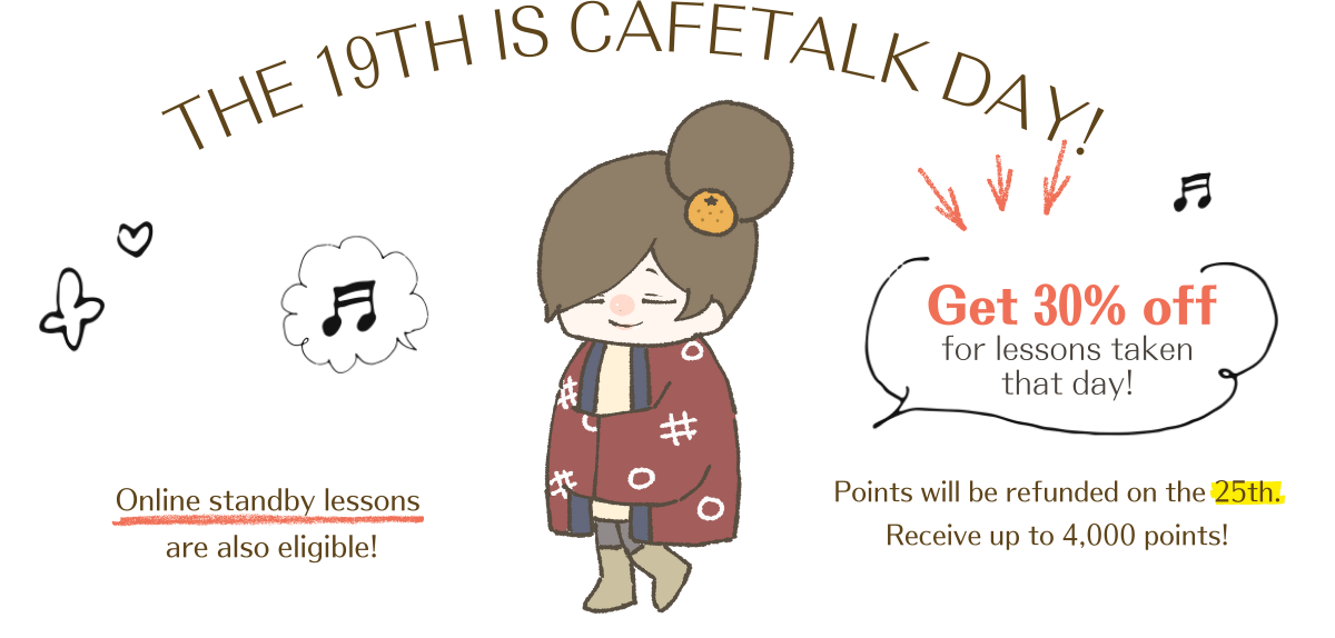*Please make sure to read the rules and conditions for Cafetalk Day before booking a lesson.