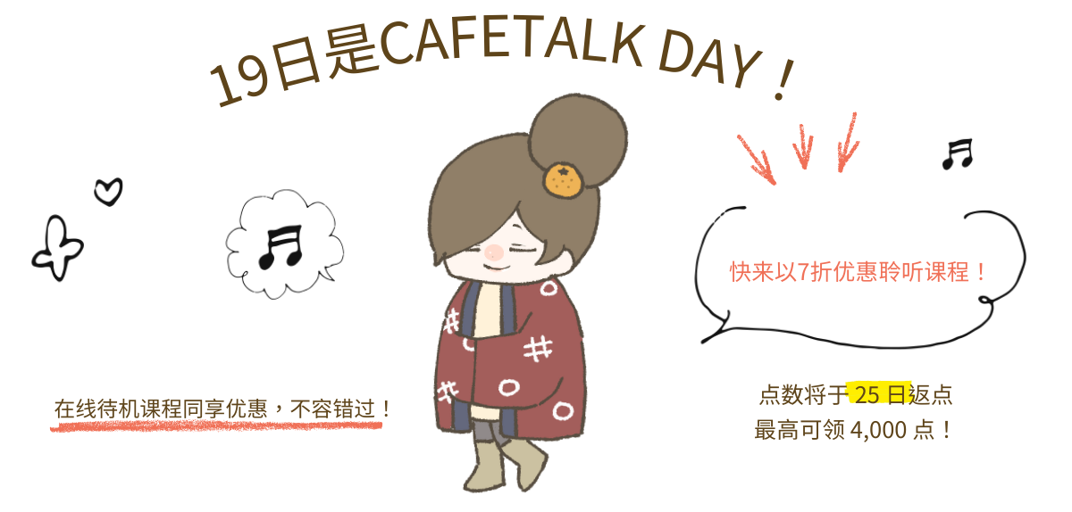 于本月 19 日聆听下列推荐课程即可获得 Cafetalk Day 限定成就徽章*!