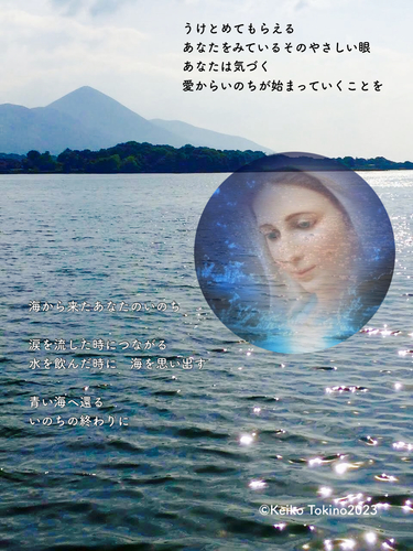 やがて母の胎内へつながります。あなたのいのちはマリアの海を記憶して、母へと旅立つのです。天とマリアが見送る時、あなたは一人で生きていく力をいただきます