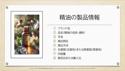 ① メディカルアロマの基礎・精油について・注意事項・関連法規