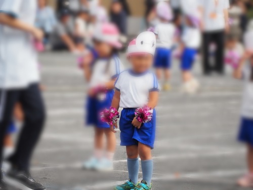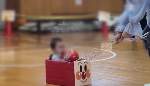 3歳の上の子の幼稚園では、かけっこ、玉入れ、ダンス、そして親子競技がありました。