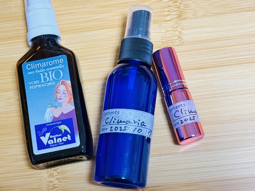 今回、私が自分用に作ったブレンドは、フランスのアロマテラピー界でとても有名な ドクター・ヴァルネが開発した、芳香吸入用の「クリマローム」に使われている精油ブレンドを参考にしています。