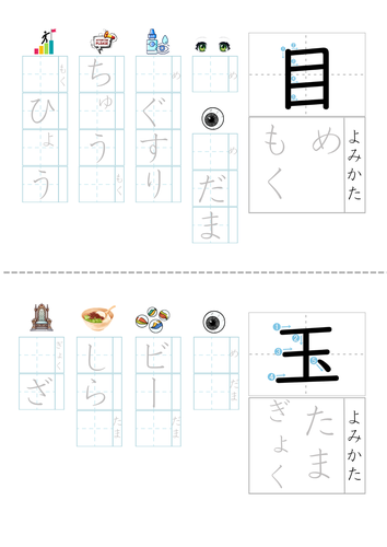 When the weather gets cold, it’s a great time to sit by the heater, make some tea, and practice kanji. Recently, I made a kanji practice sheet for 目 (eye) and 玉 (ball) — both simple characters that even first graders learn at school. Eyeballs and round decorations are everywhere in October.