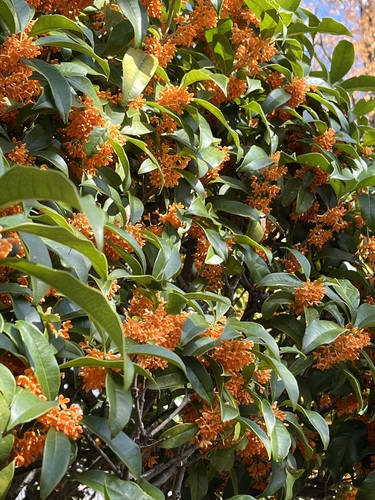 金木犀(きんもくせい)は、花よりも先に香(かおり)に気がつきます。