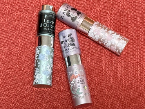 最近の私のお気に入りは、THREEPPY(DAISO系列の300円ショップ)の回すとスプレー部分が上がってくるタイプのもので、自分用はもちろんプレゼントにしても見栄えがいいので、つい見かけると買ってしまいます。