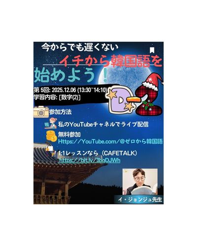 今週の土曜日、13:30~14:10に韓国語レッスンのライブ配信