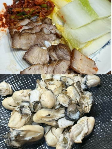 たまたま義父の故郷の珍島から送られた新鮮な牡蠣があったので、茹で牡蠣も挟んで食べました^^
