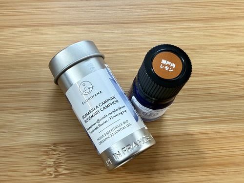 •朝(2時間):ローズマリー・カンファー精油+レモン精油