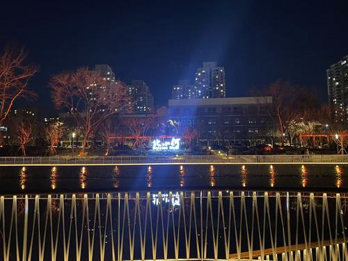 The trees along both sides of the river are covered with neon lights, and their reflections in the water look absolutely beautiful!