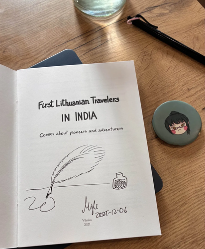 Miglė Anušauskaitė is a comic book author and senior researcher at the Judaica Research Center. Born in Kaunas in 1988, she later lived in Pakruojis and Vilnius, where she studied, read, wrote, and eventually began to draw. She graduated from Vilnius University with a bachelor’s degree in journalism and a master’s degree in semiotics. The topics of the author’s work include literature (a comic column in ‘Šiaurės Atėnai’ since 2013), cinema (a column in kulturpolis.lt since 2014), and history (the book 10 litų, together with Gerda Jord, 2014, published by Aukso žuvys; in 2015, the book won the Patriots’ Prize). Her works have been exhibited in collective exhibitions in Italy, the Netherlands, and the Lithuanian National Art Gallery, as well as in a personal comic art exhibition in Klaipėda.