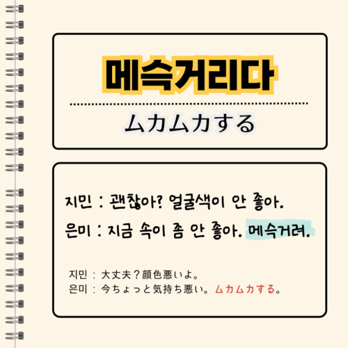 もしムカムカしたら韓国の薬局に行ってこの単語を使って行ってくださいね。