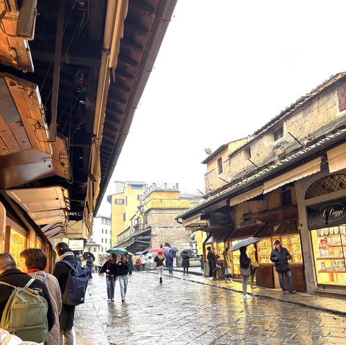 少し小雨が降る中、ドゥオーモからポンテ・ヴェッキオまで歩き、途中でアイス屋さんで休憩。