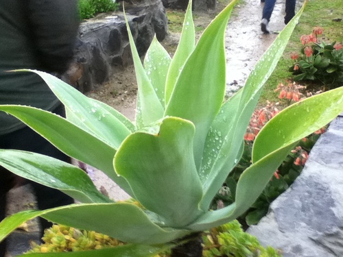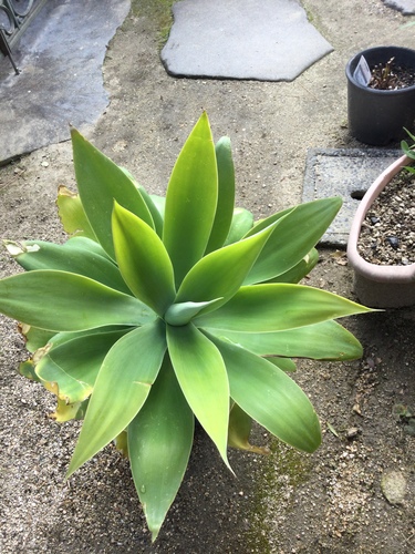 と一目惚れでした。蓮を緑にしたような印象で、別名は龍舌蘭ですから、