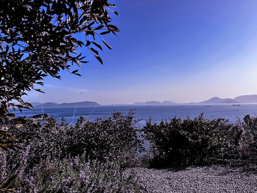 세토내해의 파란 바다를 바라보며 천천히 걷고,