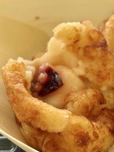 実(じつ)は「希少国産(きしょうこくさん)マダコ」が入(はい)っており、生地(きじ)は鯛出汁(たいだし)ベースで作(つく)られているんです!