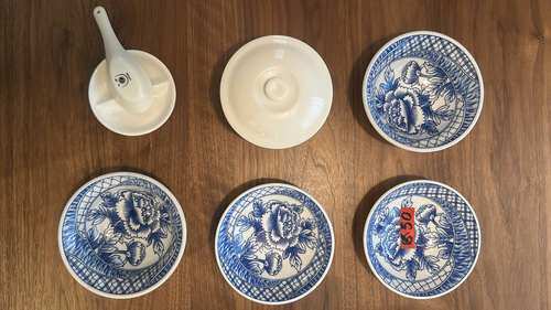 青花藍牡丹小碟與瓷碗