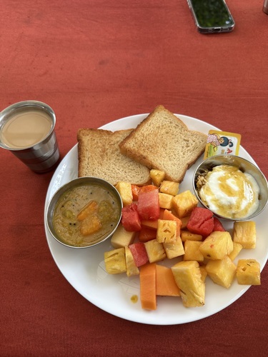 たくさんのフルーツ、ブレッド、チャイ