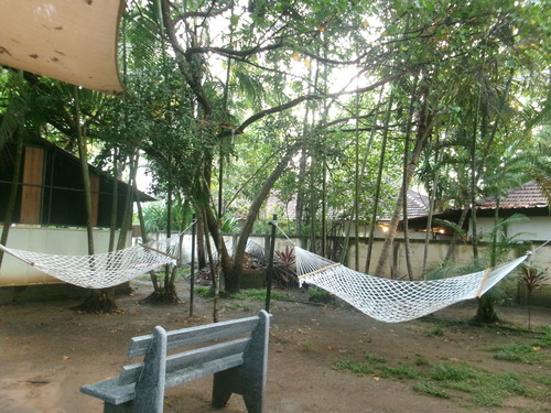 お昼休憩の後に1時間半の休憩があるのでコテージの庭にあるハンモックでお昼寝したり