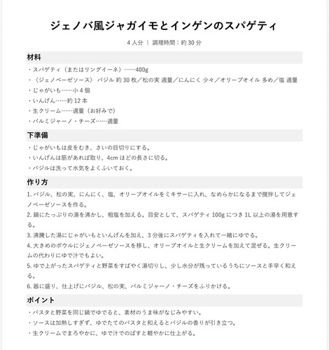 そんなときに、このGPTを使うと、レシピの内容を読みやすく整えて、見やすい形にまとめることができます。