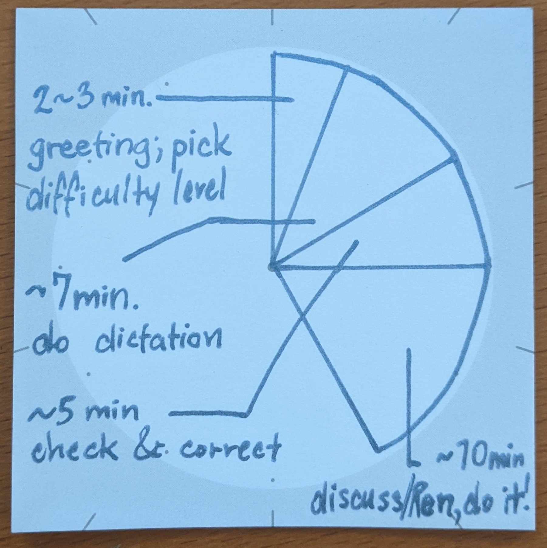 時間があれば、次はあなたの番です!新しいテキストを読み上げてもらい、私がそれを書き取ります。なぜこれが重要か?先生に練習をさせるのが楽しいだけでなく、実際にコミュニケーションに影響する発音の弱点を指摘できるからです。全てのミスが理解を妨げるわけではないので、この練習は最初に集中すべき点を特定するのに非常に役立ちます!