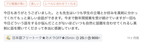 授業の後、間違った文法や発音の詳しいレビューを送ります。