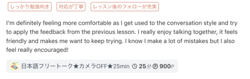 授業の後、間違った文法や発音の詳しいレビューを送ります。