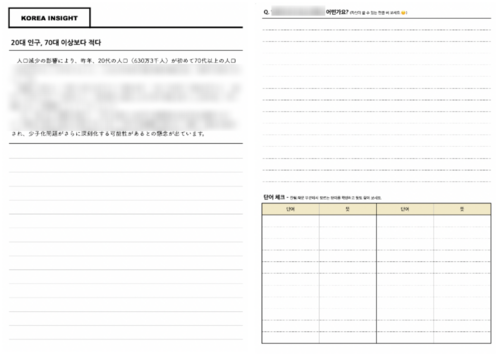 一度日本語に訳された韓国のニュース記事を題材に、それを「元の韓国語記事」に近い、自然で正確な韓国語に戻す訓練をします。最後に元の韓国語と照らし合わせることで、日本人が間違いやすい表現や、よりプロフェッショナルな韓国語の使い方を効率的に学びます。