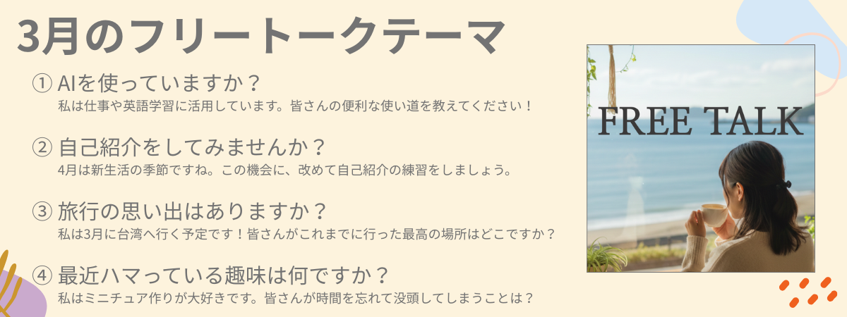 今すぐレッスン限定の15分フリートーク。