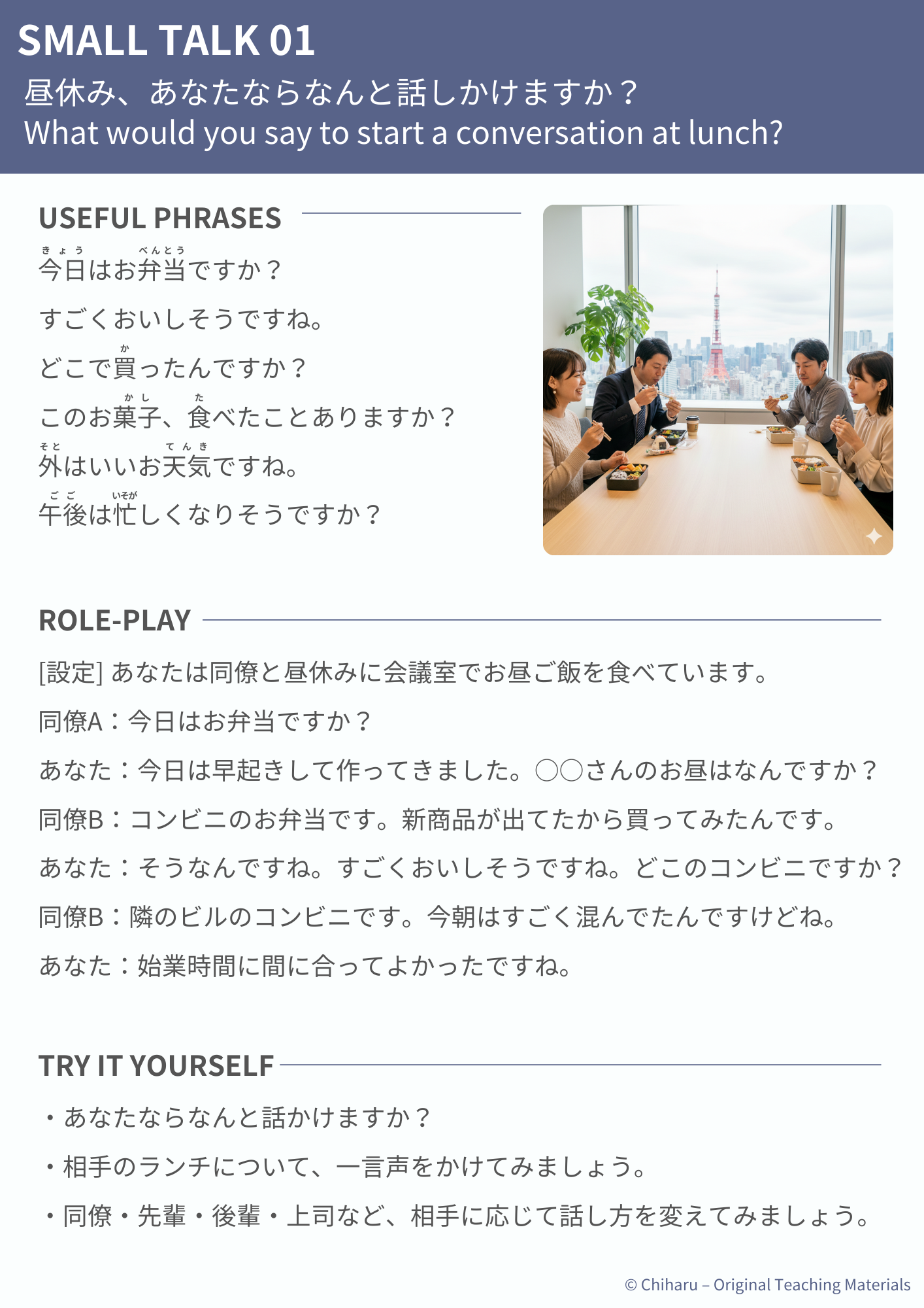 「雑談力」を磨きましょう。Improve your small talk skills.