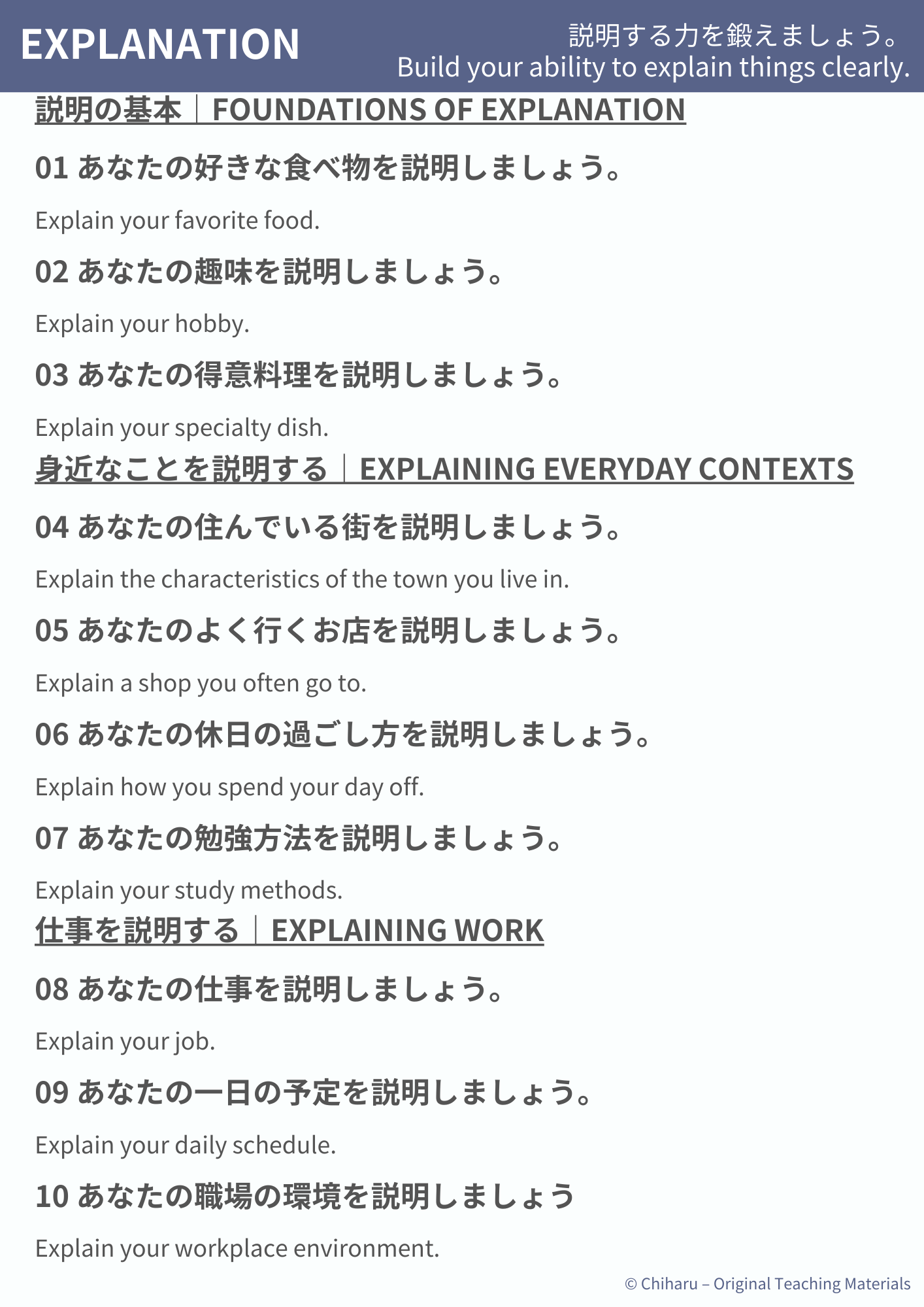 【Explanation】 (10 lessons total)
