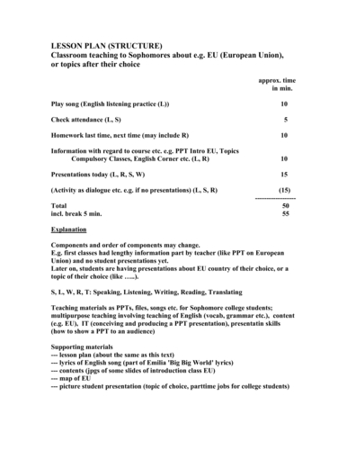 E.g. first classes had lengthy information part by teacher (like PPT on European Union) and no student presentations yet.