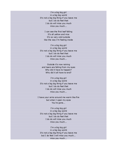 --- lyrics of English song (part of Emilia 'Big Big World' lyrics)