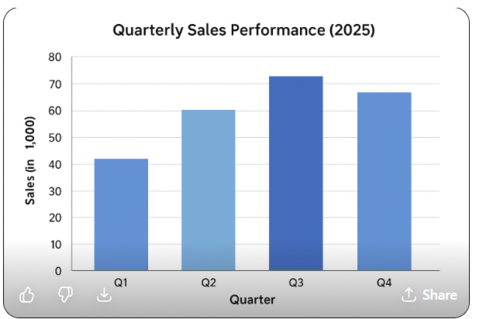 Show a simple chart (e.g., sales growth over 4 quarters).