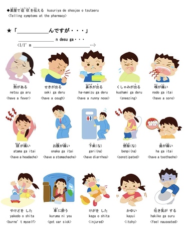 ご近所の方とのあいさつ、ゴミ出し、病院へ行く時、お薬をもらった時、子供さんが学校を休む時、数字の読み方など…
