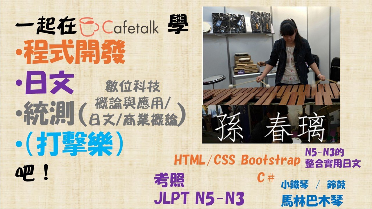 因此,我對於日文跟資訊管理系的科目,尤其是日檢JLPT、整合日文(跨N5-N3實用整合)跟網頁前端程式開發(HTML、CSS等,含成人轉職與學生提前開始學習)、C#程式入門等科目,比較熟,可以提供更多的資訊跟建議。