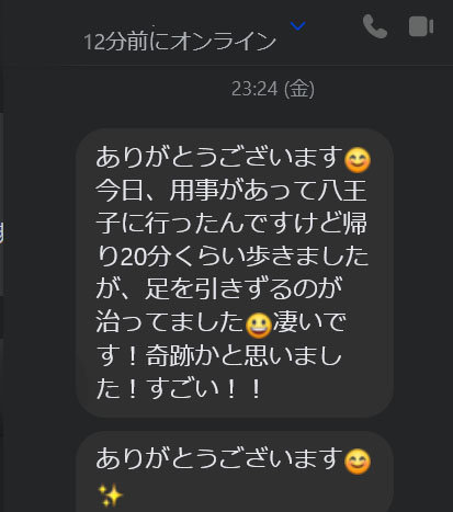 10年前に階段から落ちて以来、左足を引きずるようになったというMさんからのご感想。