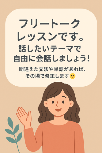 フリートークレッスンです。話したいテーマで自由に会話しましょう!間違えた文法や単語があれば、その場で修正します:)