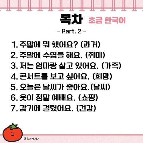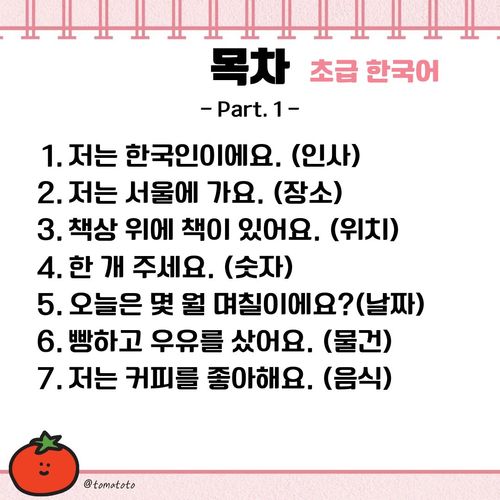 "저는 한국인입니다."부터 시작하는 초급 한국어를 토마토토 선생님과 함께 재밌게 배워요♬