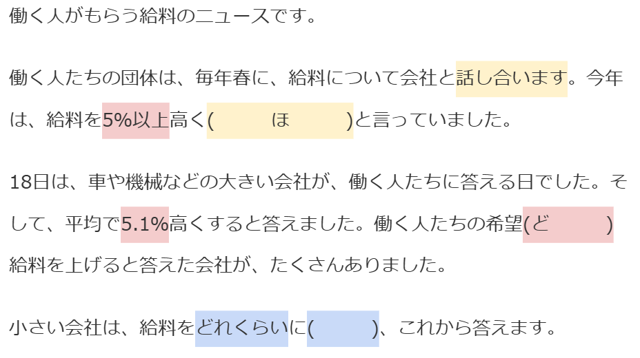 (引用:NHK News web easy『大きい会社 働く人の希望どおり給料を上げる答えが多かった』)