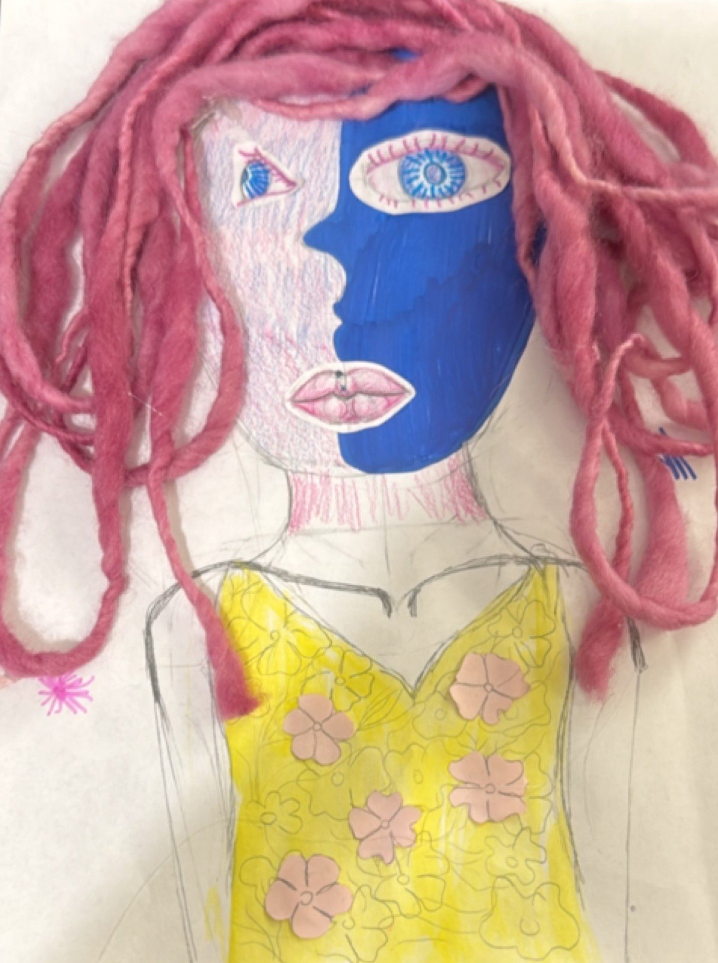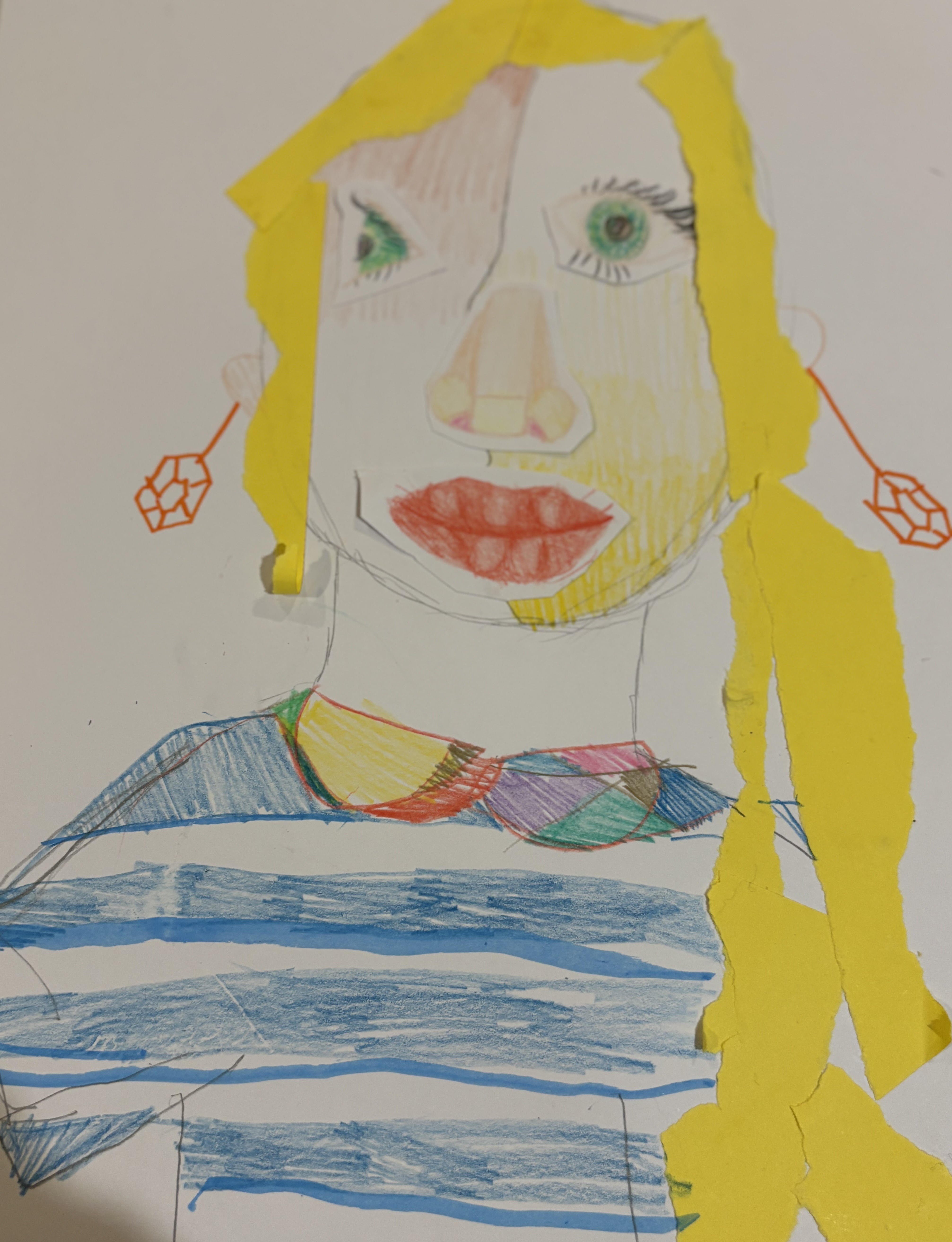 描いたパーツはハサミで切り取り、別で描いた顔の輪郭と組み合わせることで、自分だけの「コラージュポートレート」を完成させます。