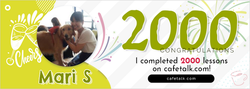 レッスン数2000回達成しました。みなさんのおかげでここまでやってこれました。ありがとうございます。これからもよろしくお願いします。     新しいクーポンを発行しました - 2000回レッス...