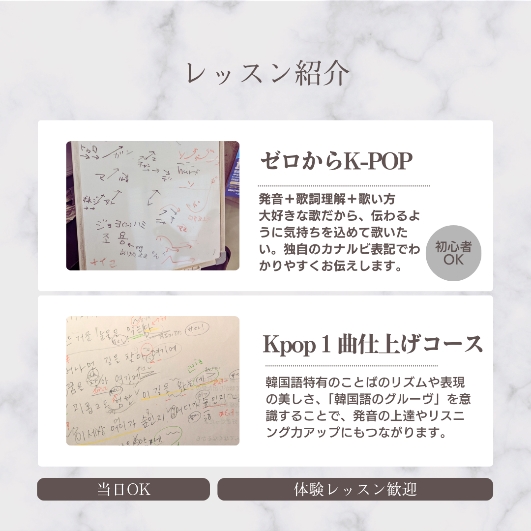 という方は、≪韓国語×歌≫レッスンも準備しています。