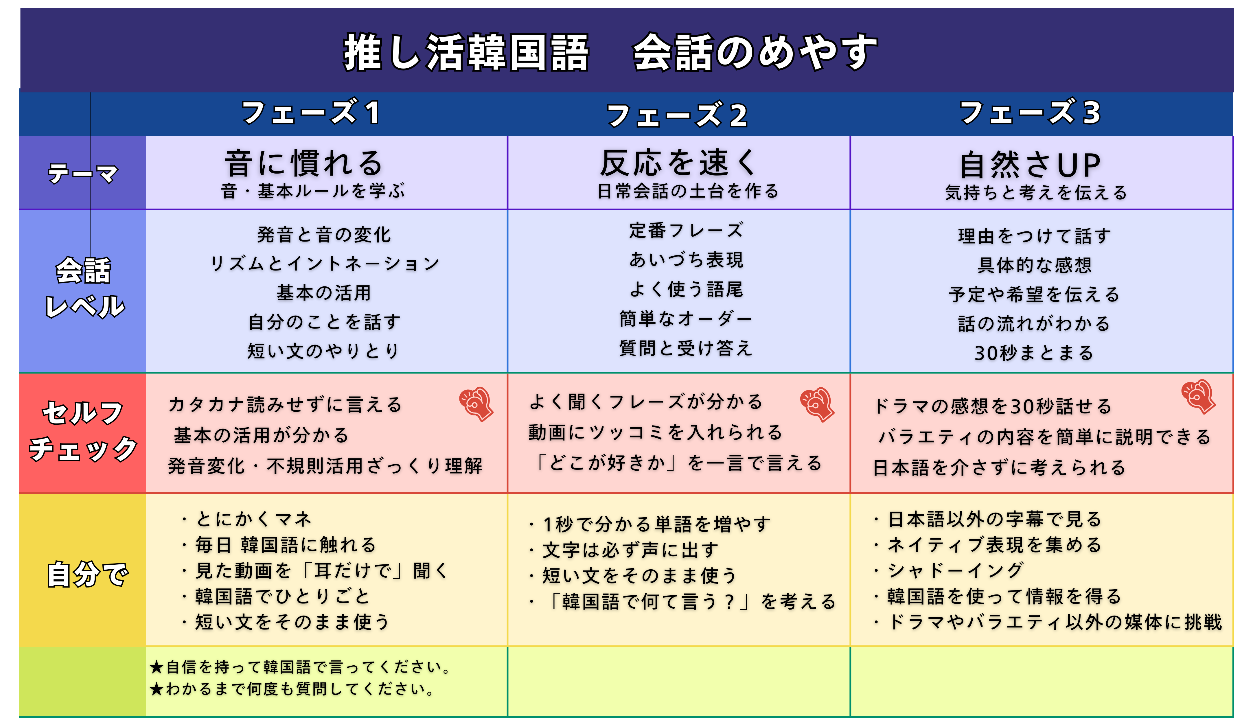 │ 自信をもって「韓国語できます」といえる力を身につけよう