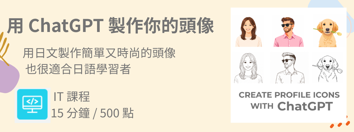 要不要一邊使用日語,一邊學習設計技能呢?「我想要一個有自己風格的頭像,但不知道該怎麼做……」 如果你也有這樣的想法,這堂新課程很適合你!   你可以從 6 種範例風格中選擇喜歡的頭像, 在 25 ...