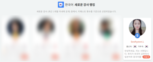 카페토크 ★한국어 새로운 강사 랭킹★ 5위에 선정되었습니다.