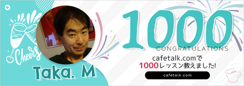 Taka, Mです、こんにちは!当方紹介ページご訪問誠にありがとうございます。大勢の優秀な講師陣の中から私のレッスンを受講して頂いた&頂いている生徒様には感謝の気持ちで一杯です。その過程で皆様の英語力向上のお手伝いができること、この上なく喜ばしく感じております。以下提供するレッスンの特徴や自身の紹介を含めて書き込ませて頂きます。