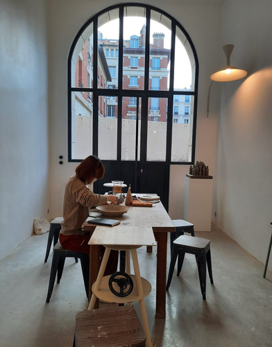 現在はアーティストとして活動しており、制作過程を生徒さんにフランス語で指導するとういう機会も。