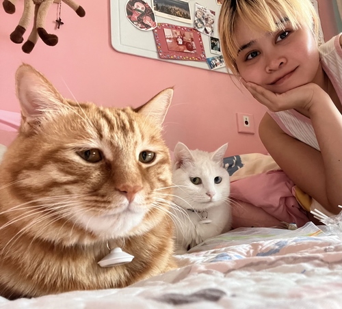 I’m a total cat lover and share my home with two amazing rescue cats: an orange ball of energy and a fluffy white snuggle bug—they’re my constant study buddies and lesson-time mood boosters!